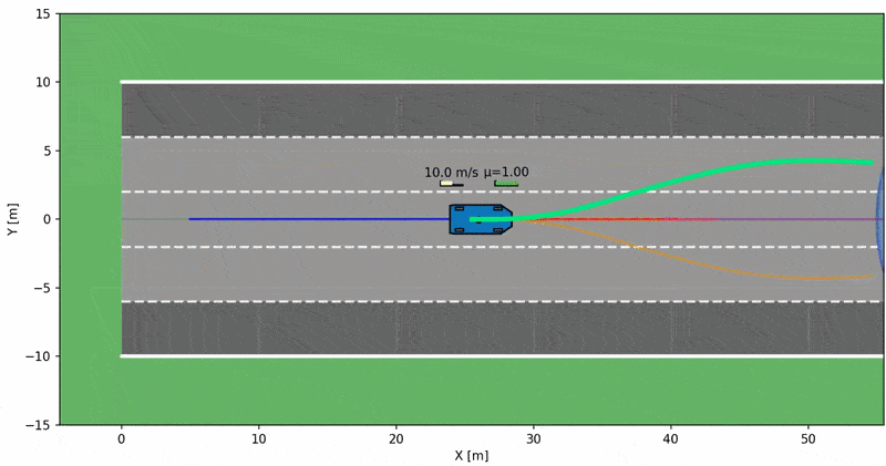 Fallback policy library (PL-CBF): 64 evasive maneuvers + 1 nominal
